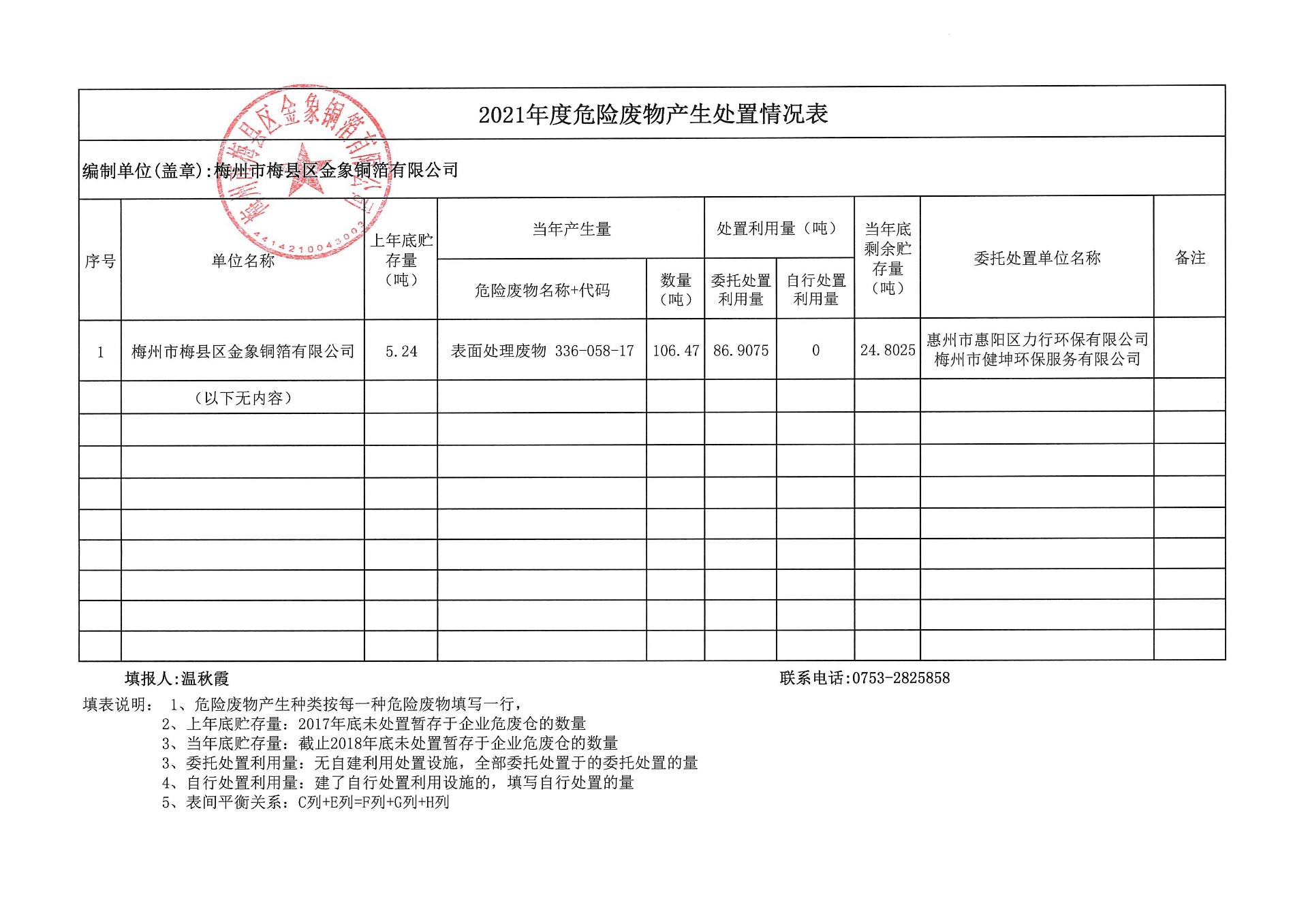梅州市梅縣區(qū)金象銅箔有限公司系廣東嘉元科技股份有限公司的全資子公司,現(xiàn)將梅州市梅縣區(qū)金象銅箔有限公司國家排污許可證中固廢污染防治信息進(jìn)行公示。