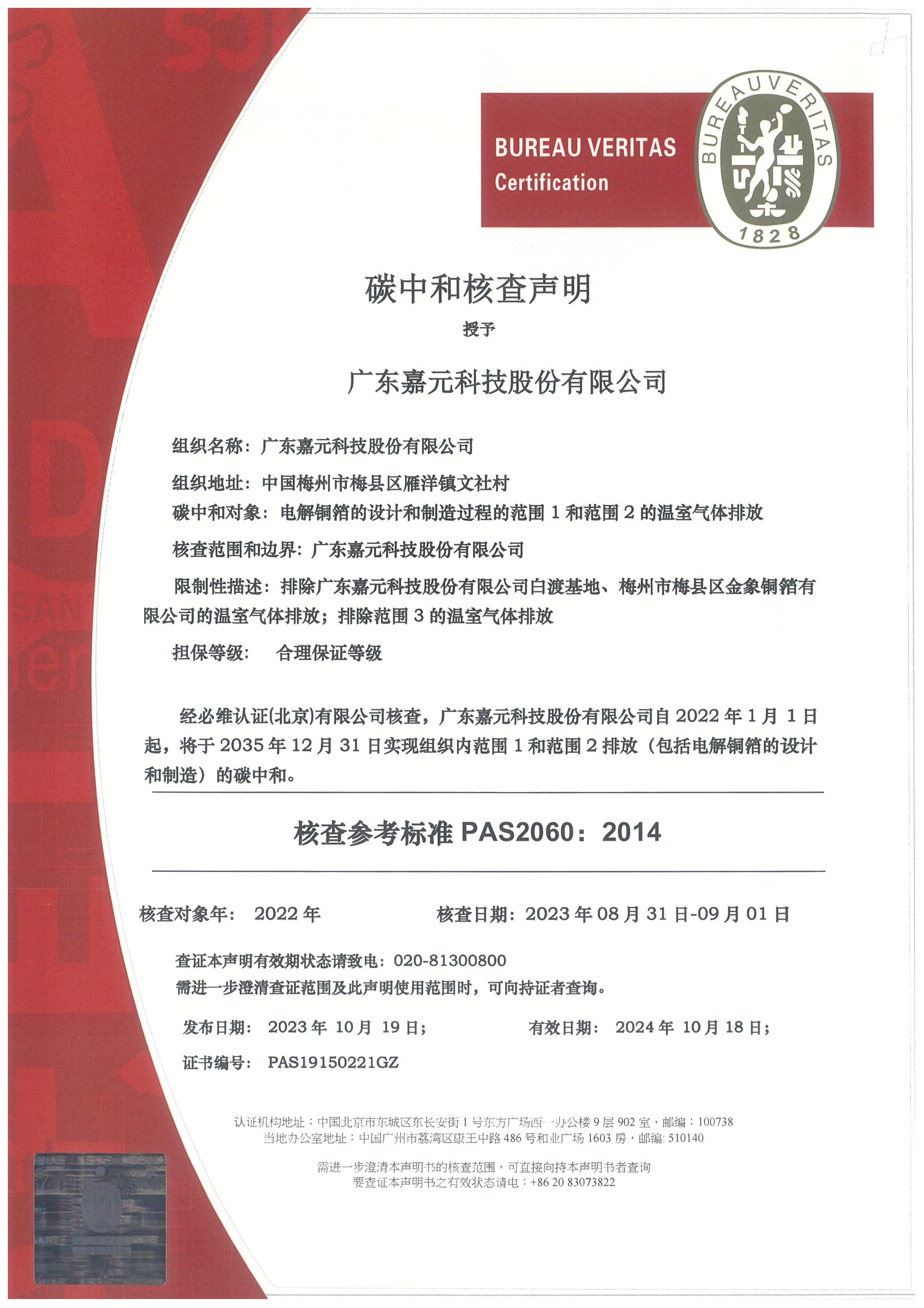碳中和核查聲明