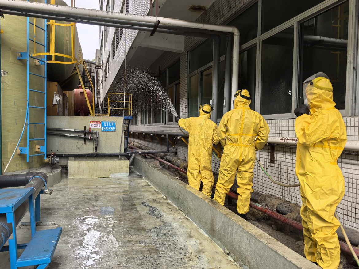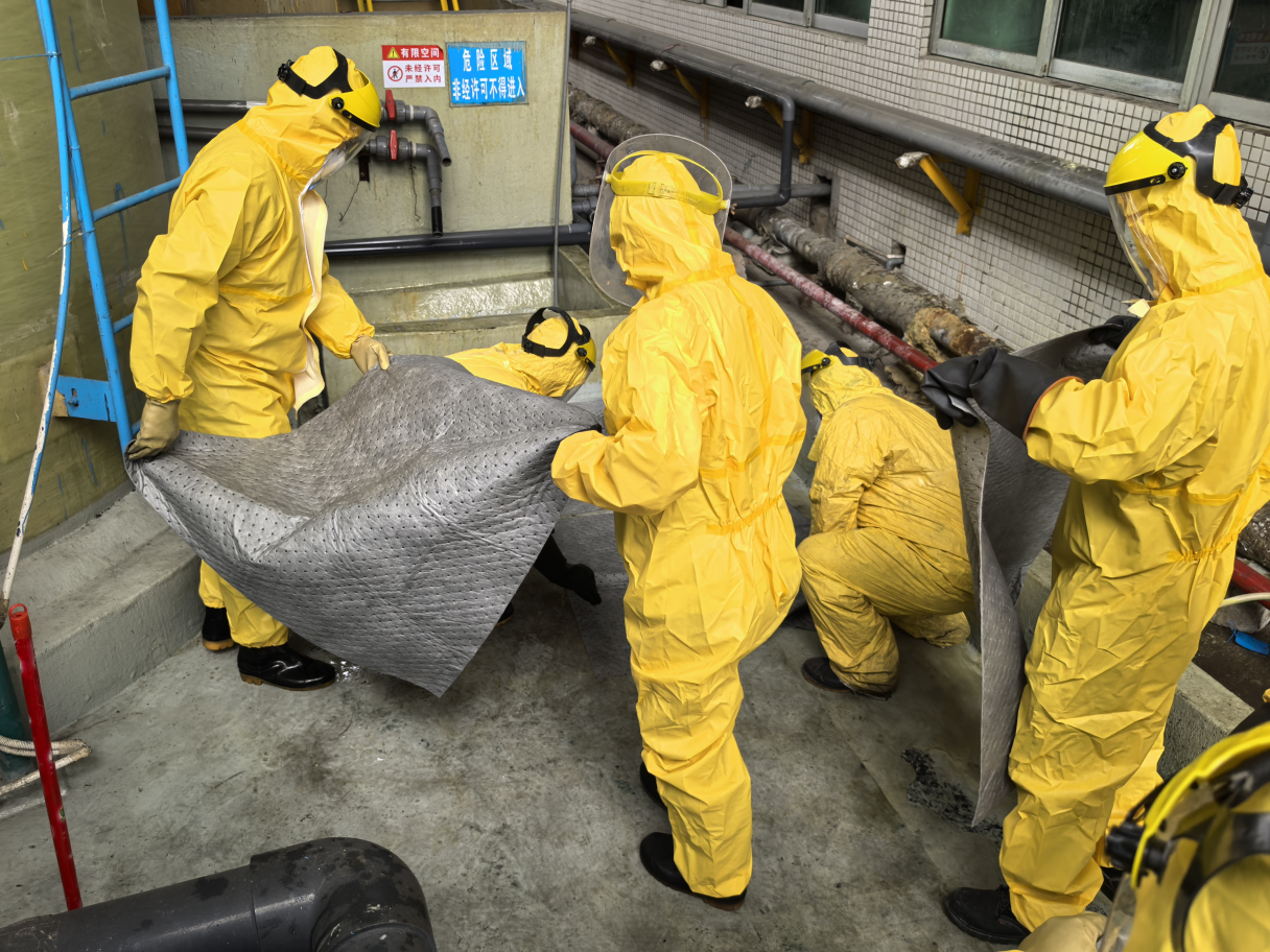 在演練的硫酸泄漏事故發(fā)生后,各相關(guān)部門緊密協(xié)作,立即啟動突發(fā)環(huán)境事件應(yīng)急預(yù)案,警戒疏散組立即趕到現(xiàn)場,對周邊人員進行緊急疏散,并拉起警戒線;搶險救援組身著專業(yè)的防護裝備,準(zhǔn)確迅速地切斷了污染源,利用應(yīng)急沙袋、事故水池等應(yīng)急設(shè)施,及時有效地控制了污染的擴散,阻止了事態(tài)的進一步蔓延,成功地處置了突發(fā)環(huán)境事件。